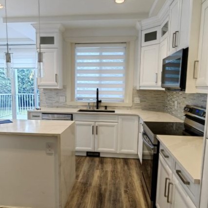 Browse our completed kitchen renovation projects across North Vancouver. Each image showcases real work completed for local homeowners, featuring custom cabinetry, stone countertops, and modern layouts.
