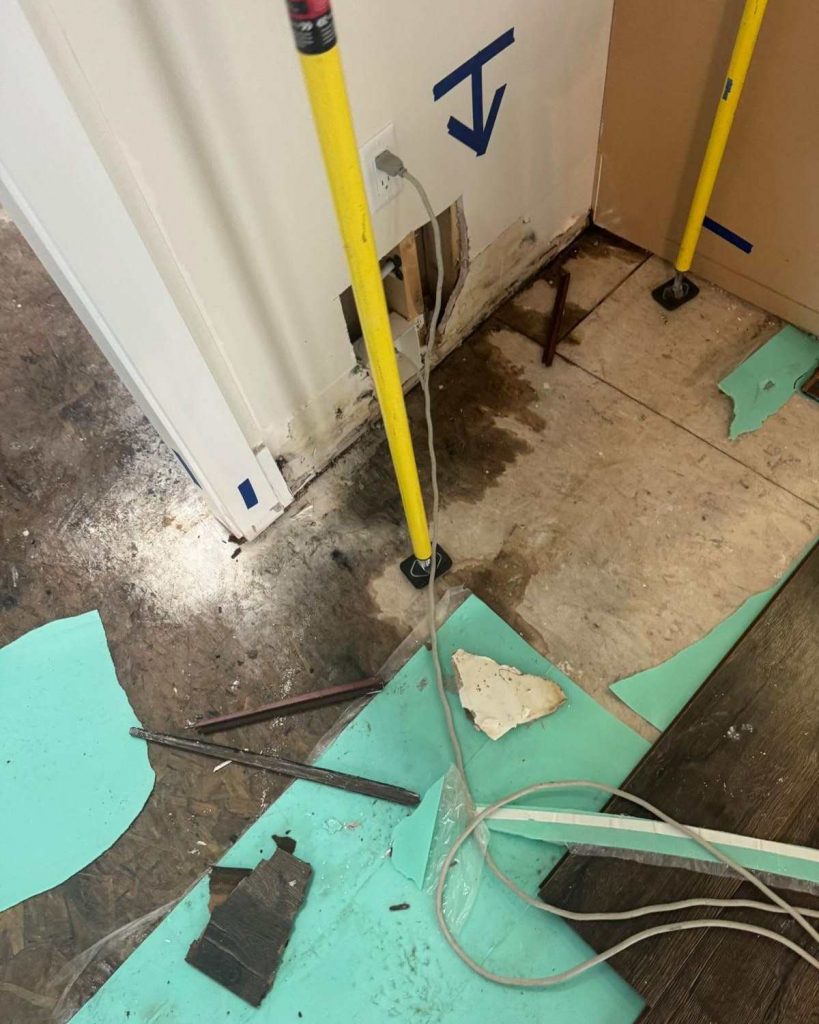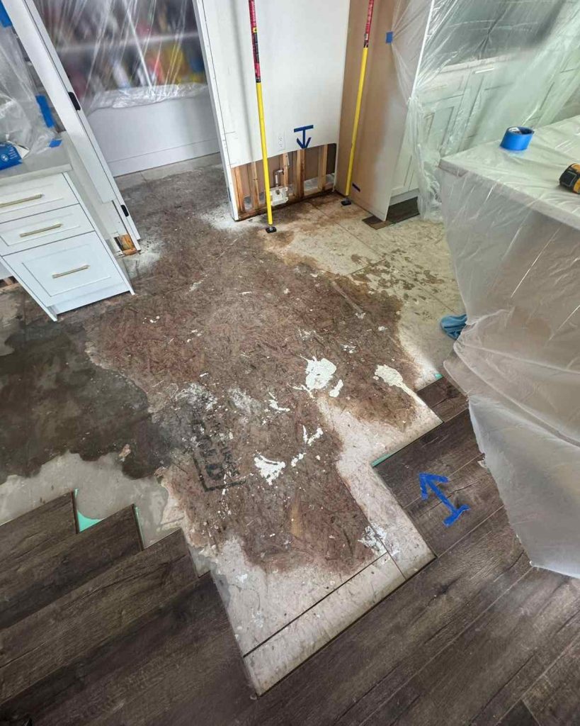 Due to the hidden nature of the leak, water spread beneath the flooring and affected multiple sections of the home before being discovered.